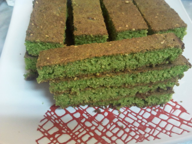 نضع الخليط بالصينية البايركس التي تم دهنها بالطحينية ونضع عليه الباودر والسمسم